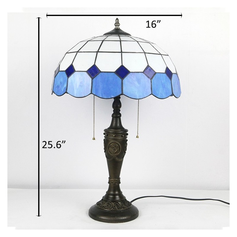 16 collu retro Tiffany galda lampa, vitrāžas, Vidusjūras lampas gaismas, rokām darināta stikla galda lampa