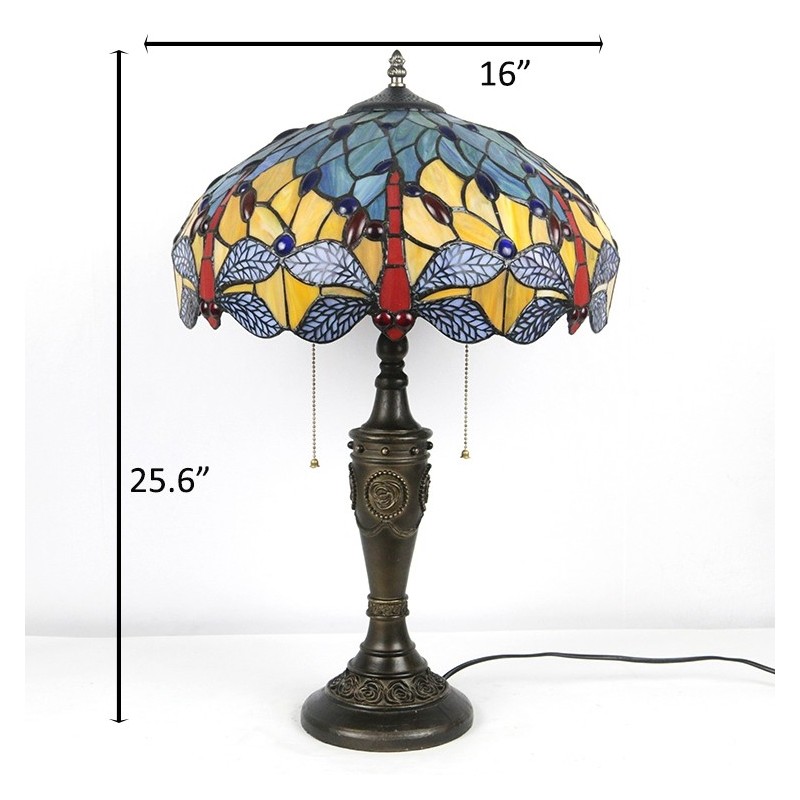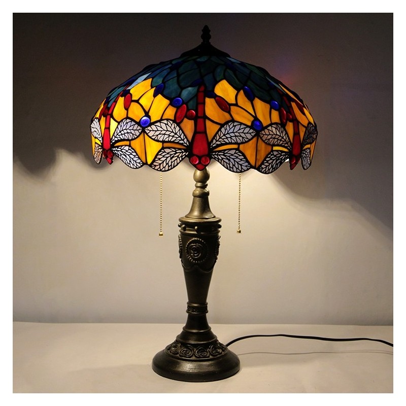 16 collu retro Tiffany galda lampas vitrāžas, sarkanas spāres lampas lampas, rokām darinātas stikla rakstāmgalda dekora gaisma