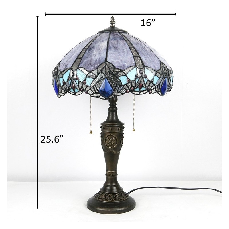 16 collu retro Tiffany galda lampa, sarkana vitrāža Gragonfly lampas gaismas, rokām darināta stikla galda lampa