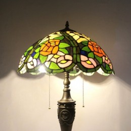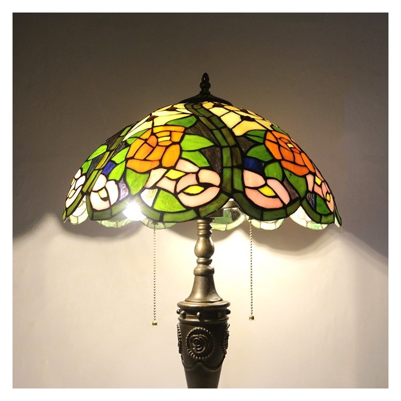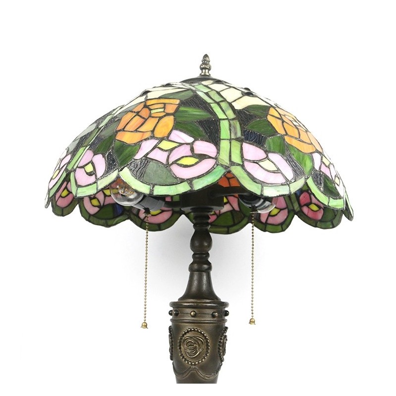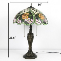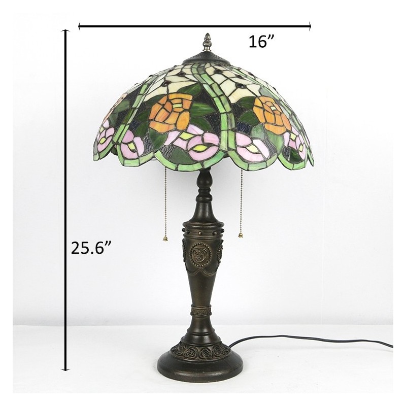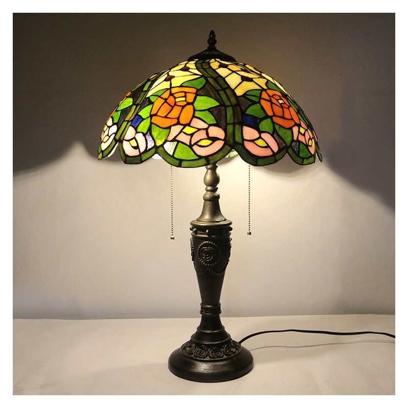 16 collu retro Tiffany galda lampa, sarkana vitrāža, dzeltena roze, lampas lampas ar rokām darināta stikla galda lampa
