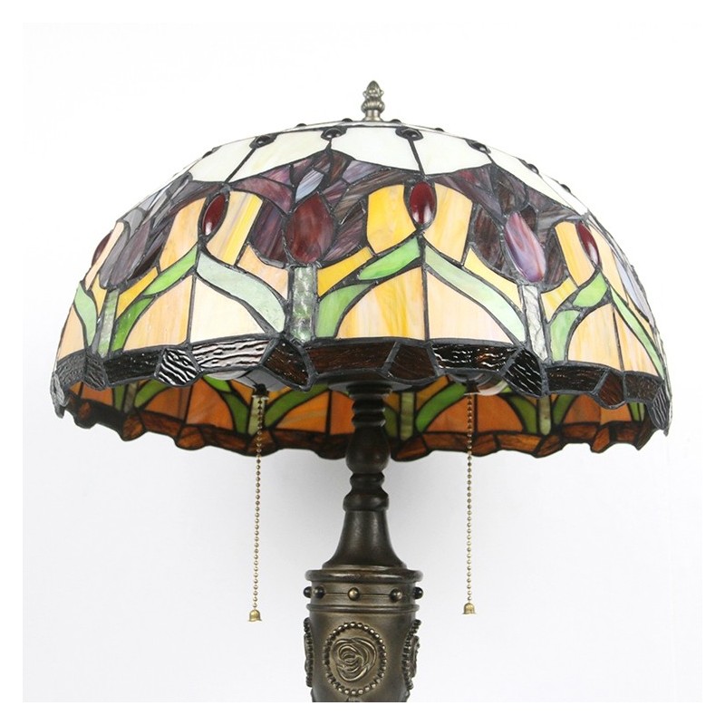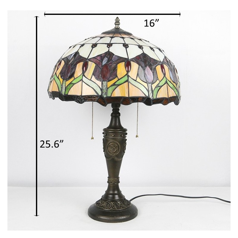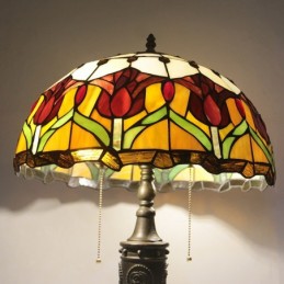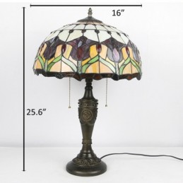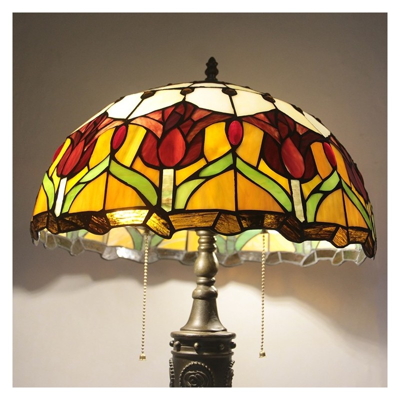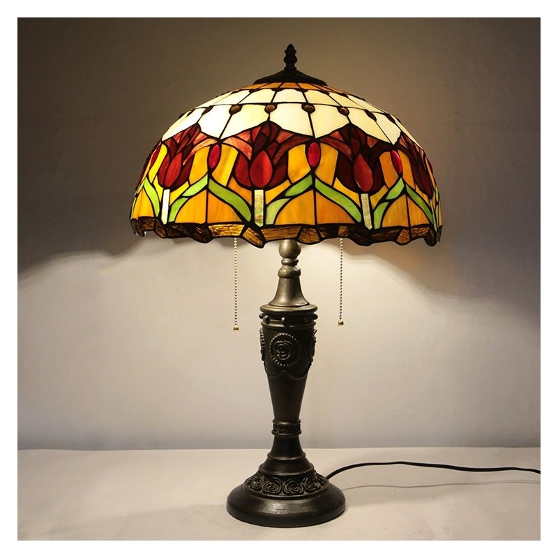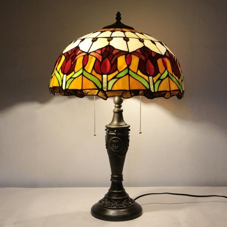16 collu retro Tiffany galda lampa, sarkana vitrāža, tulpju lampa, ar rokām darināta stikla galda lampa
