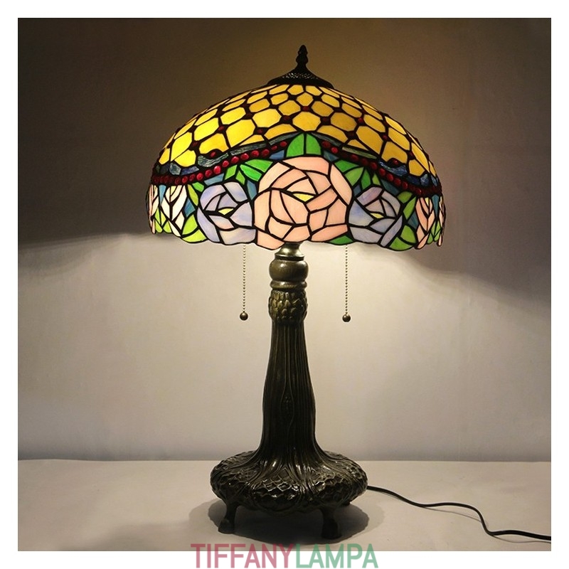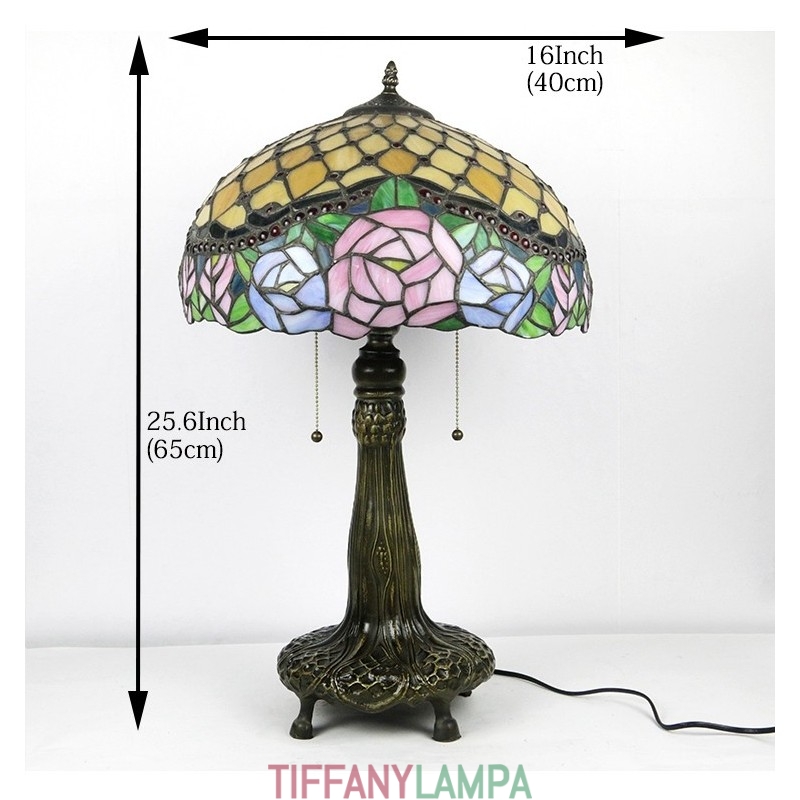 16 collu Tiffany lampas vitrāžas galda lampa rozā rozā lampas stila rakstāmgalds lasīšanai gaismas dekors Apgaismojums