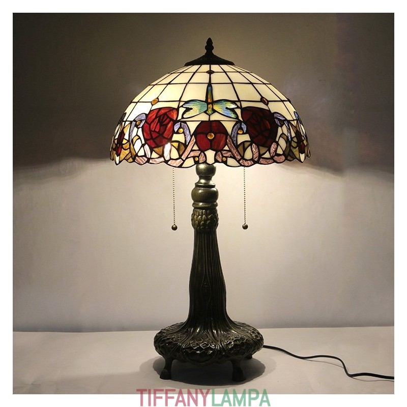 16 collu Tiffany lampas vitrāžas galda lampa sarkanās rozes lampas stila rakstāmgalds lasīšanai gaismas dekors apgaismojums