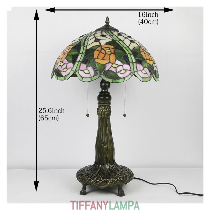 16 collu Tiffany lampas vitrāžas galda lampa Rožu lampas stila rakstāmgalds lasīšanai gaismas dekors Apgaismojums