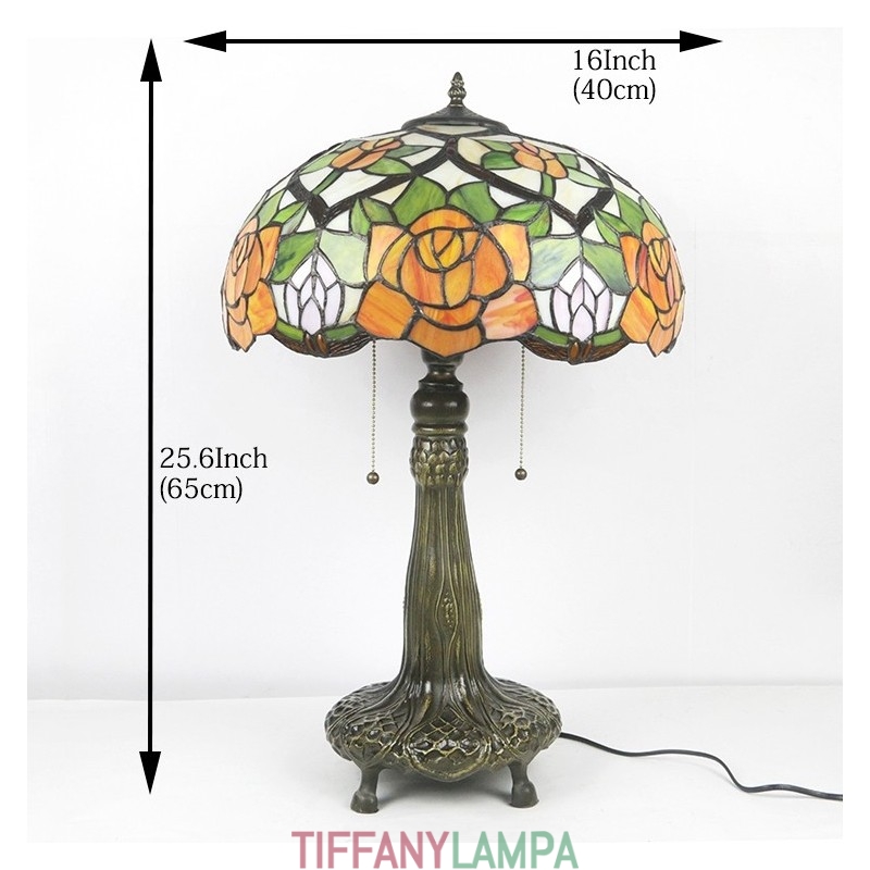 16 collu Tiffany lampas vitrāžas galda lampa Dzeltenas rozes lampas stila rakstāmgalds lasīšanai gaismas dekors Apgaismojums