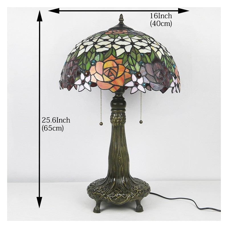 16 collu Tiffany lampas vitrāžas galda lampa Rožu ziedu stila rakstāmgalds lasīšanai gaismas dekors Apgaismojums