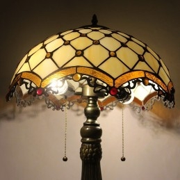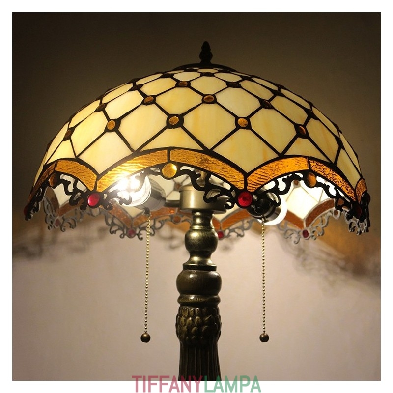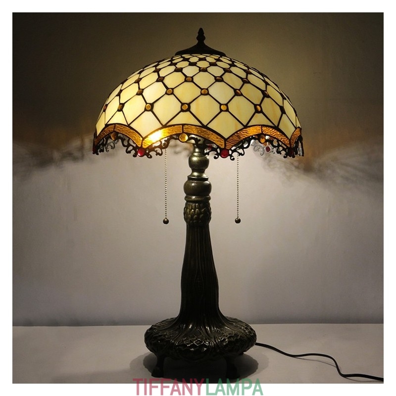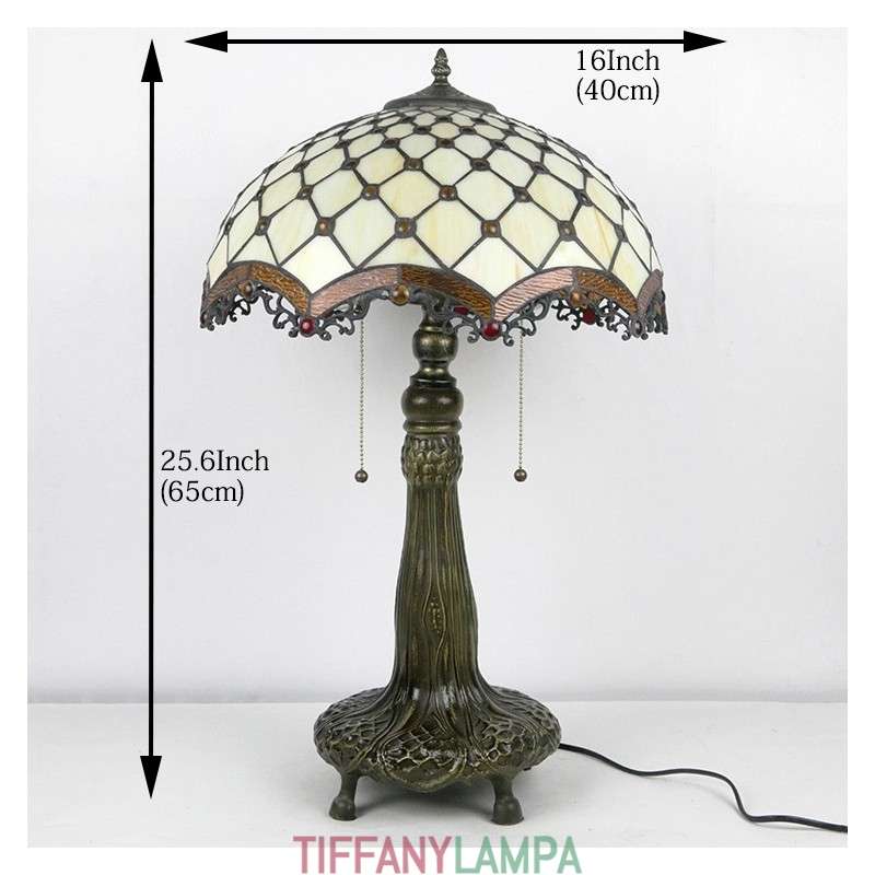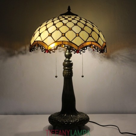 16 collu Tiffany lampas vitrāžas galda lampa krēmkrāsas pērļu lodītes stila rakstāmgalds lasīšanai gaismas dekors Apgaismojums