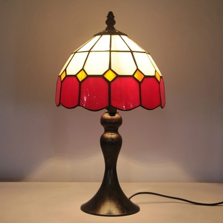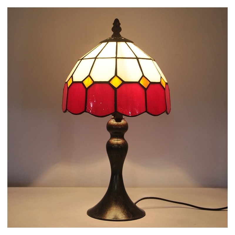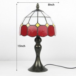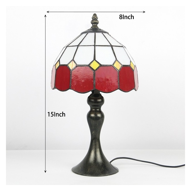 Tiffany vitrāžas stila rakstāmgalds, gaiši sarkans, režģis, lampas galds, lasīšanai nakts gaisma W8H15 collas