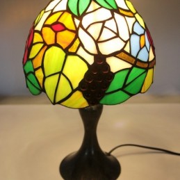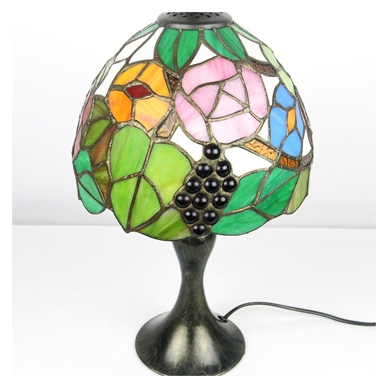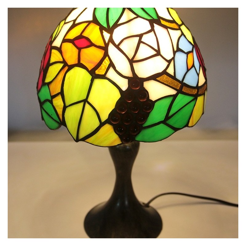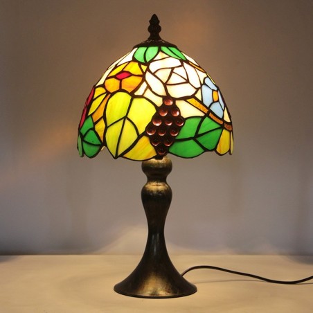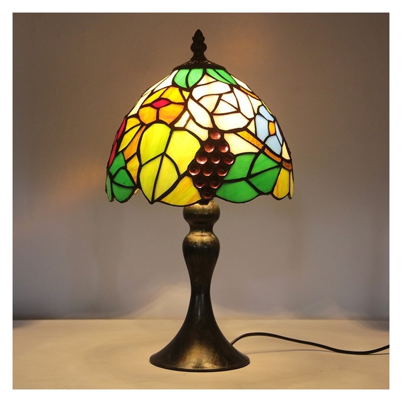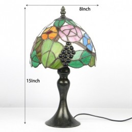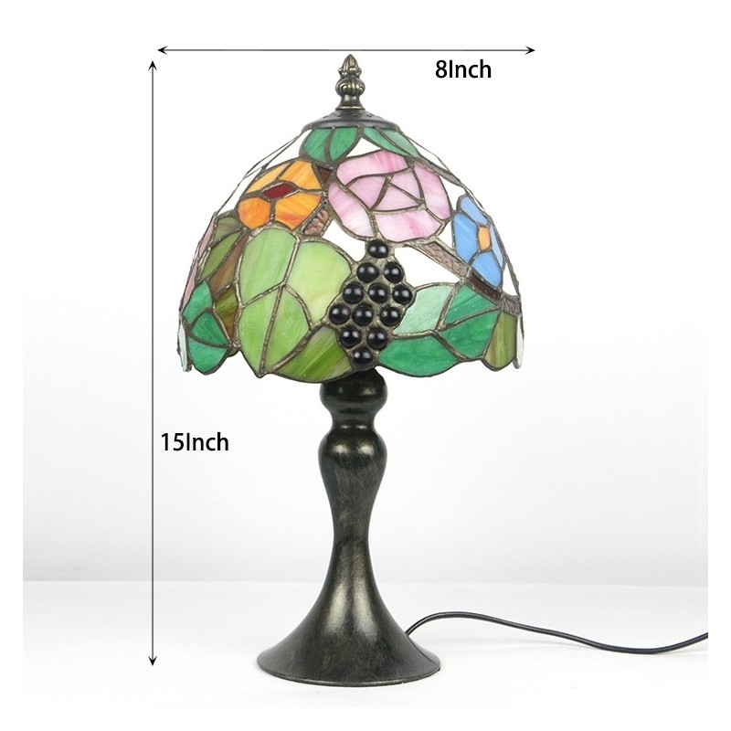 Tiffany vitrāžu stila rakstāmgalds, gaišs vīnogu lampas galds, nakts gaisma W8H15 collas