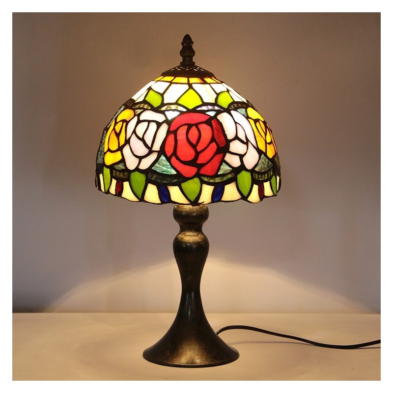 Tiffany vitrāžas stila rakstāmgalds, gaiši sarkans rozes lampas galds, nakts gaisma W8H15 collas