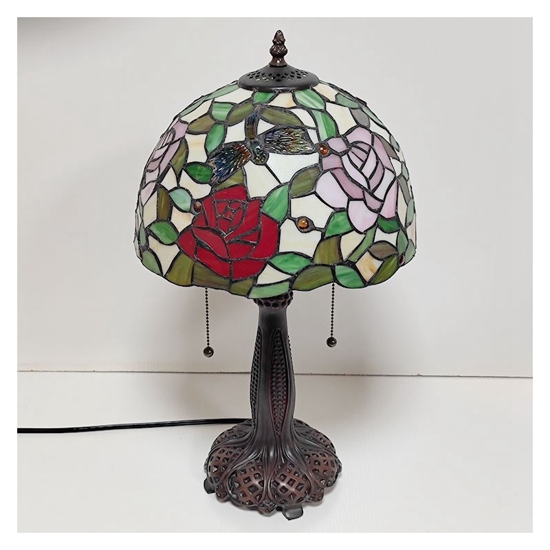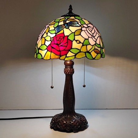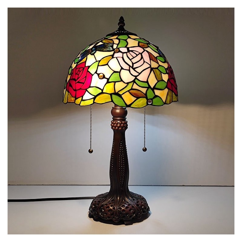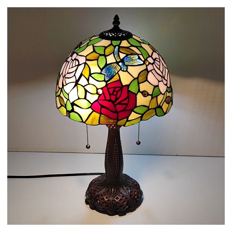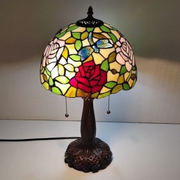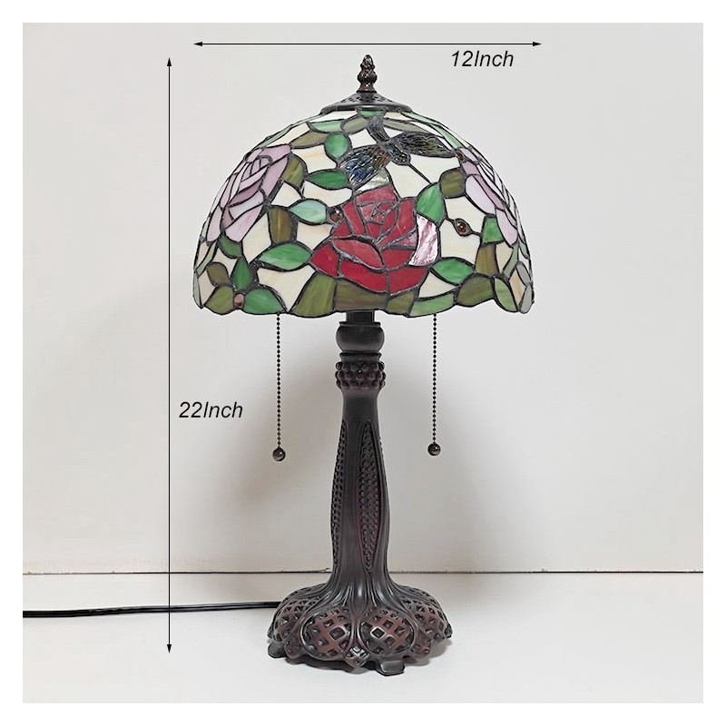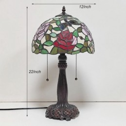 Tiffany vitrāžas stila rakstāmgalds gaismas rozes ziedu lampas galds lasīšanai nakts gaisma W12H22 collas