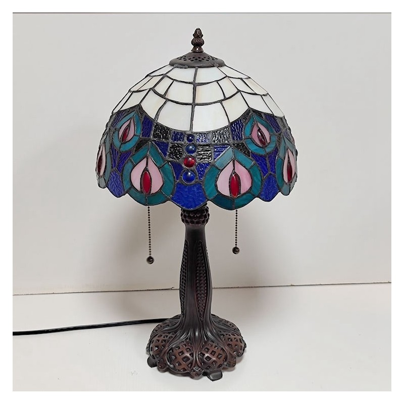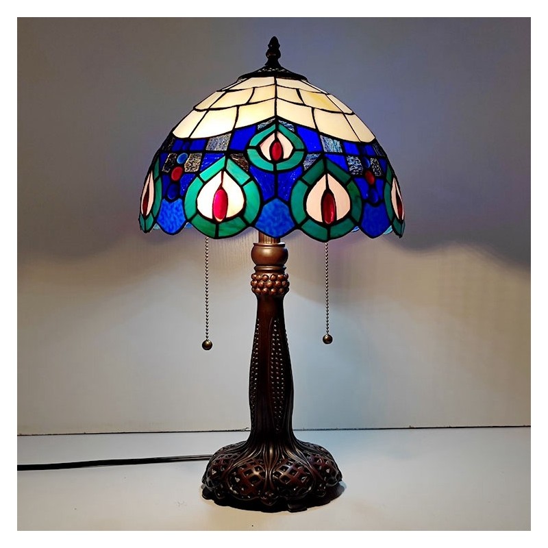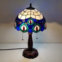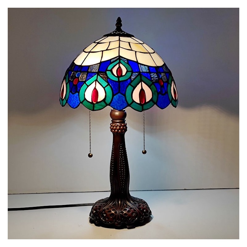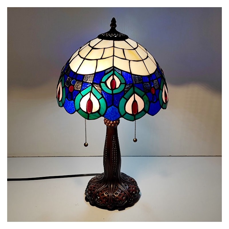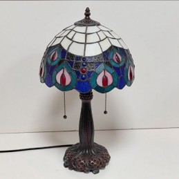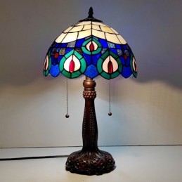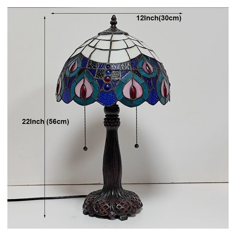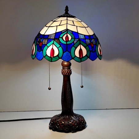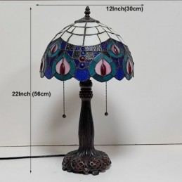 Tiffany vitrāžas stila rakstāmgalda gaismas pāva spalvu ēnojums galda lasīšanai nakts gaisma W12H22 collas