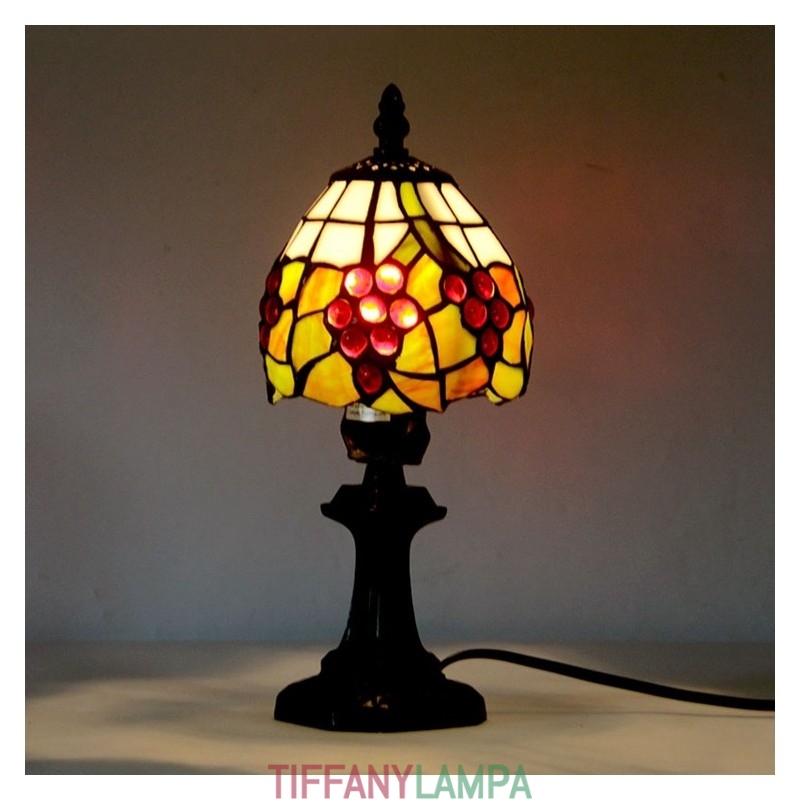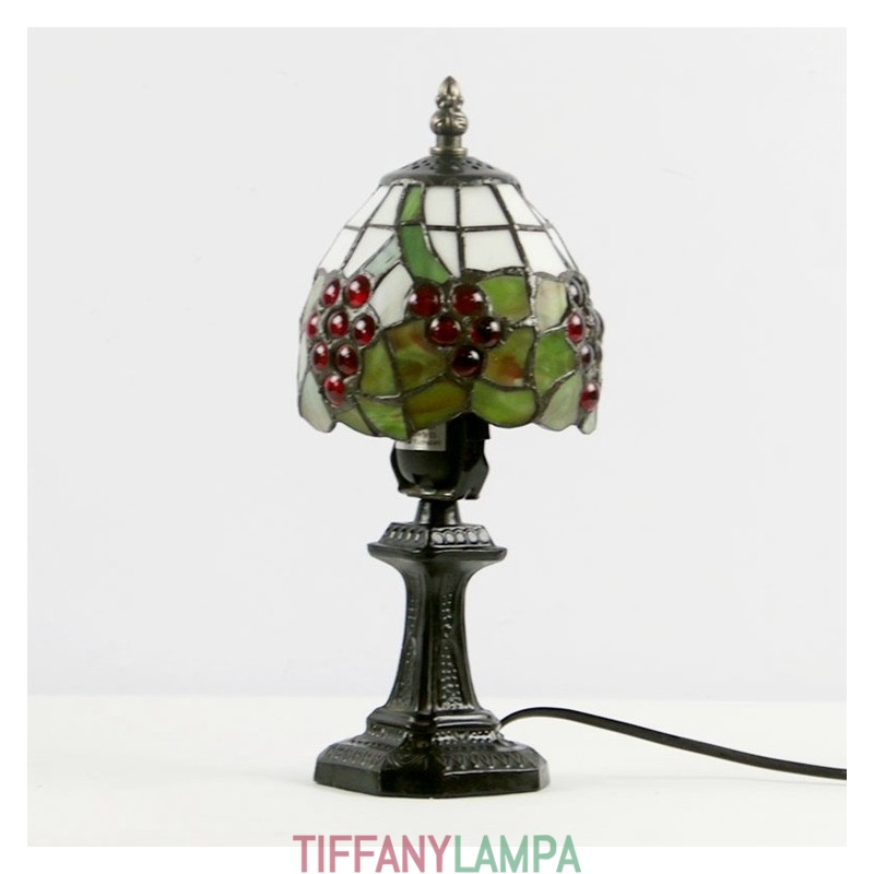 Maza akcentu lampa Tiffany stila vitrāžas galda gaismas vīnogas zaļa lapa