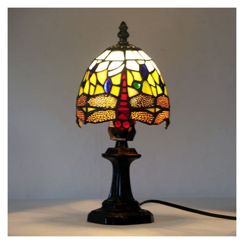 Mini Red Dragonfly Tiffany galda lampa vitrāžas maza galda lampa Deco Night Light