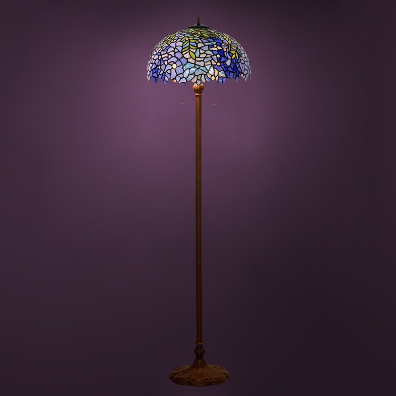 40 cm zila Wisteria Tiffany vitrāža grīdas lampa