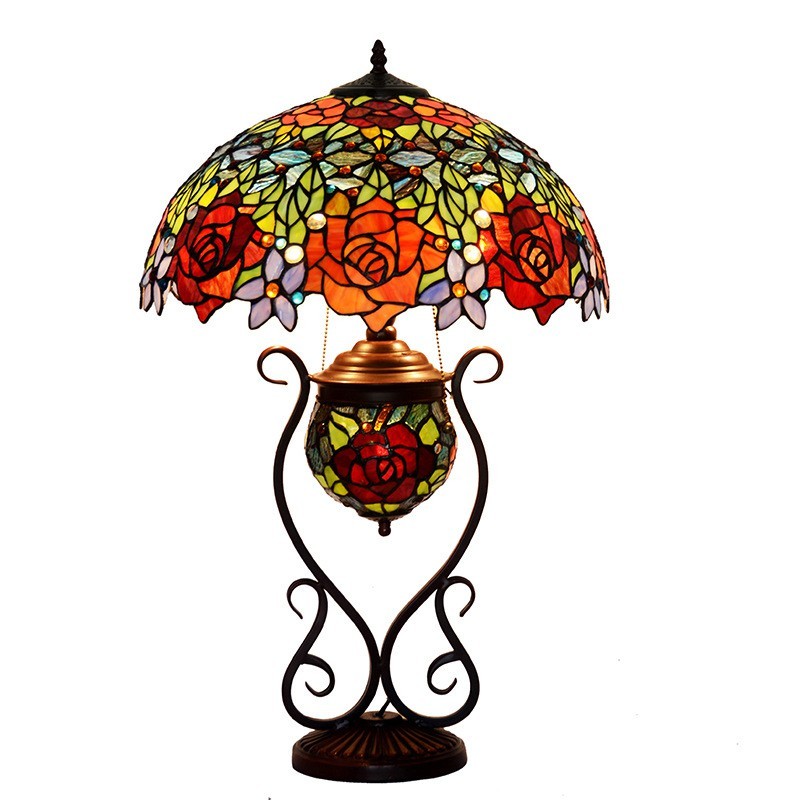 45 cm Rose Tiffany vitrāžas galda lampa
