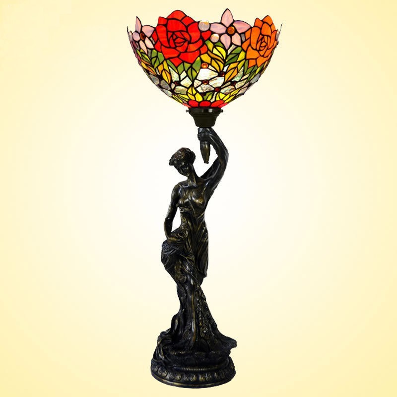 18 cm lauku rozes Tiffany vitrāžas galda lampa