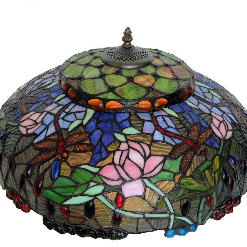 45 cm Retro Lotus Dragonfly Tiffany vitrāžas galda lampa