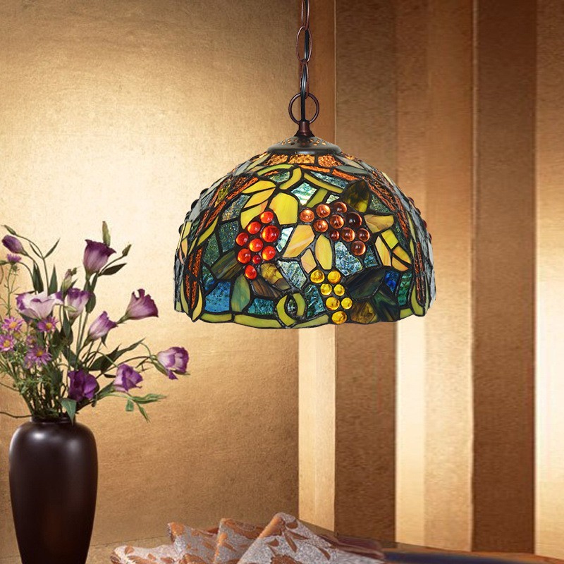 20 cm lauku vīnogu Tiffany vitrāžu piekarināmais apgaismojums
