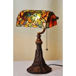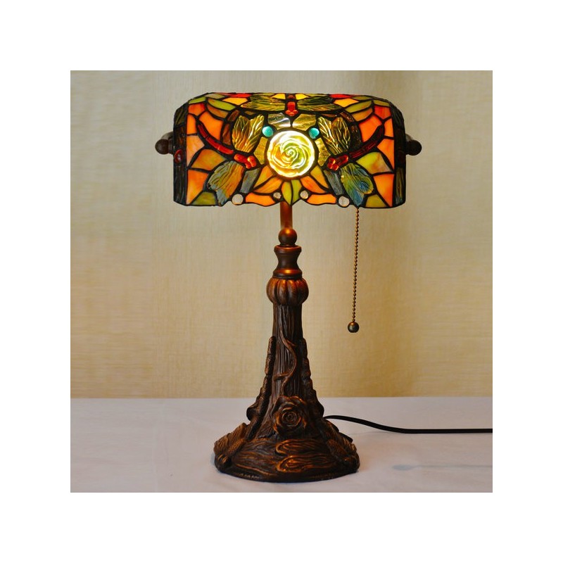 25 cm Dragonfly Rose Tiffany vitrāžas galda lampa