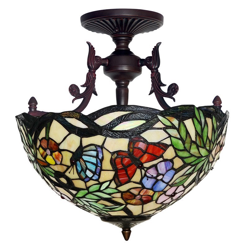 40 cm tauriņš Tiffany vitrāžu piekarināmais apgaismojums