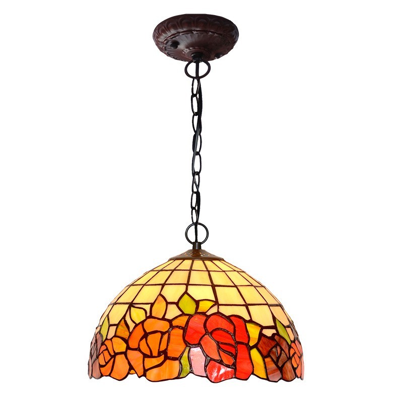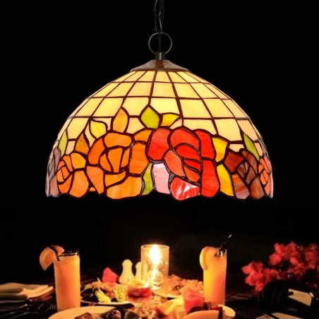30 cm sarkanās rozes Tiffany vitrāžas galda lampa