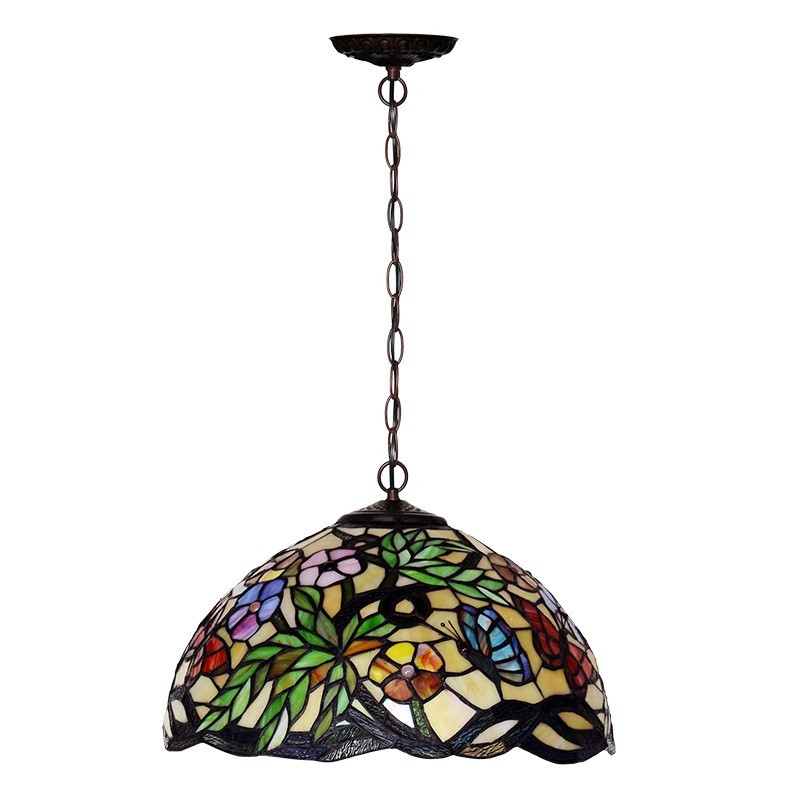 40 cm lauku tauriņš Tiffany vitrāžu piekarināmais gaismeklis