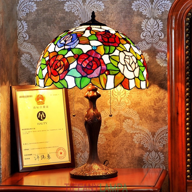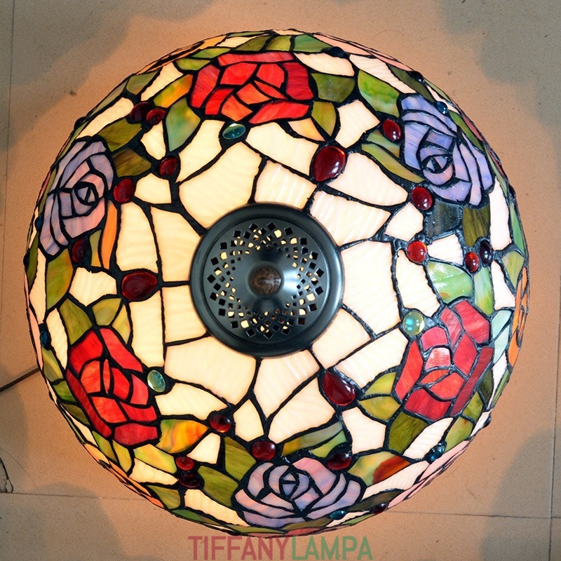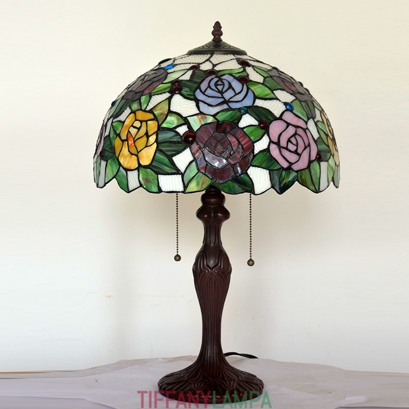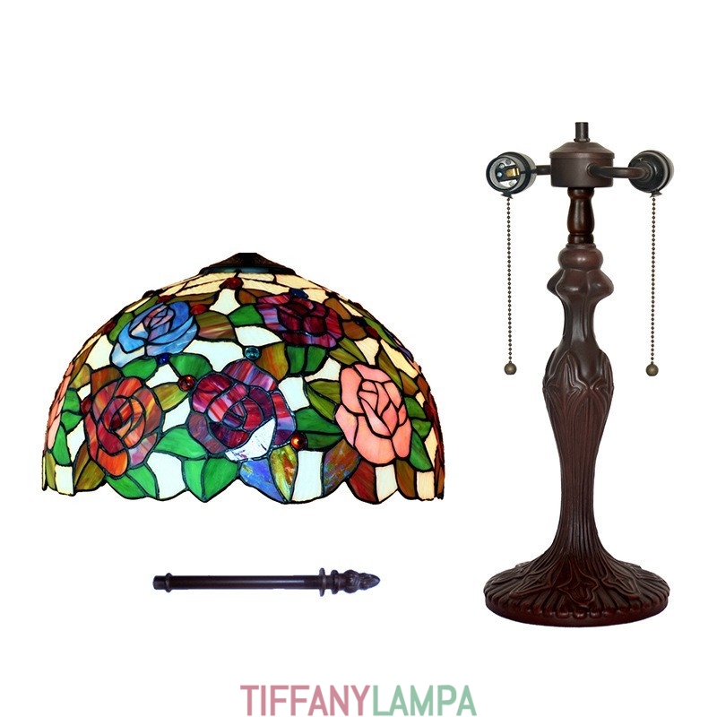 40 cm Rose Tiffany vitrāžas galda lampa