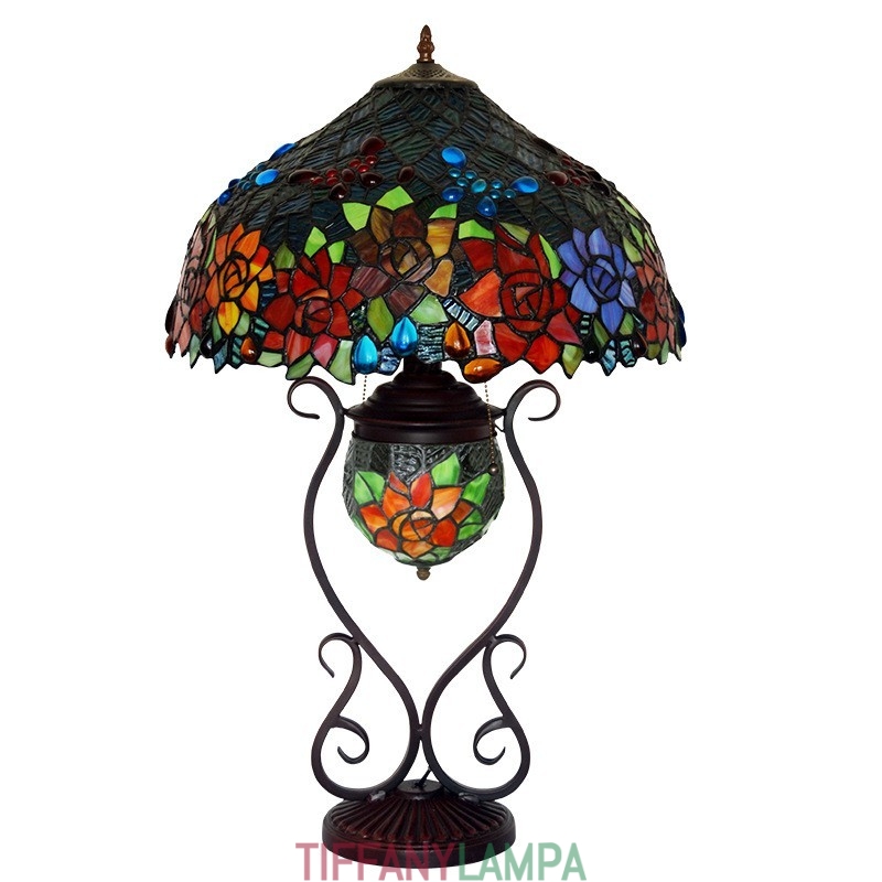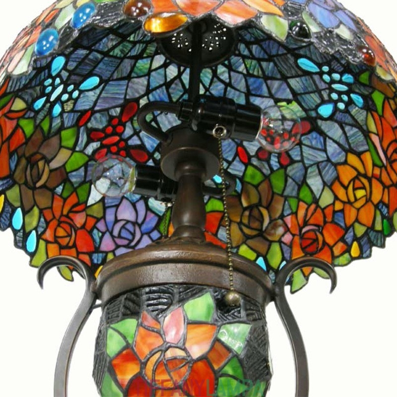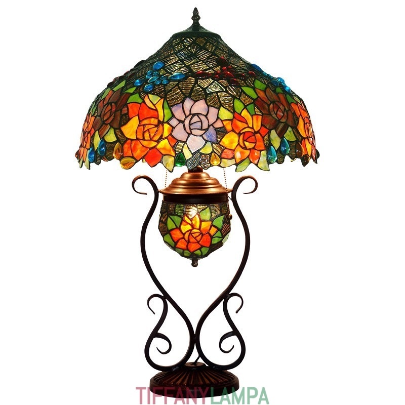 43 cm Butterfly Rose Tiffany vitrāžas galda lampa