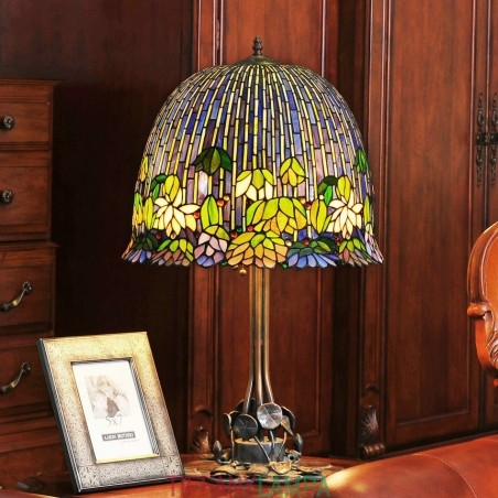 Diametrs:18 collas Atona materiāls:Vitrāža Stils:Eiropas retro Modelis:TJ1113 Ieteicamā telpa:Guļamistaba, Mācību telpa/birojs, Dzīvojamā istaba Spuldze Bāze:E26/E27 Amatniecība:Roku darbs Spriegums:90–240 V Spuldzes jauda:Maks. 40 W Spuldze ir iekļauta vai nav:spuldze nav iekļauta. Ieteicamais telpas lielums (kvadrātmetri):5 - 10