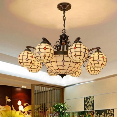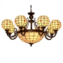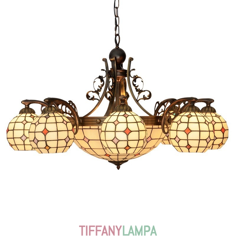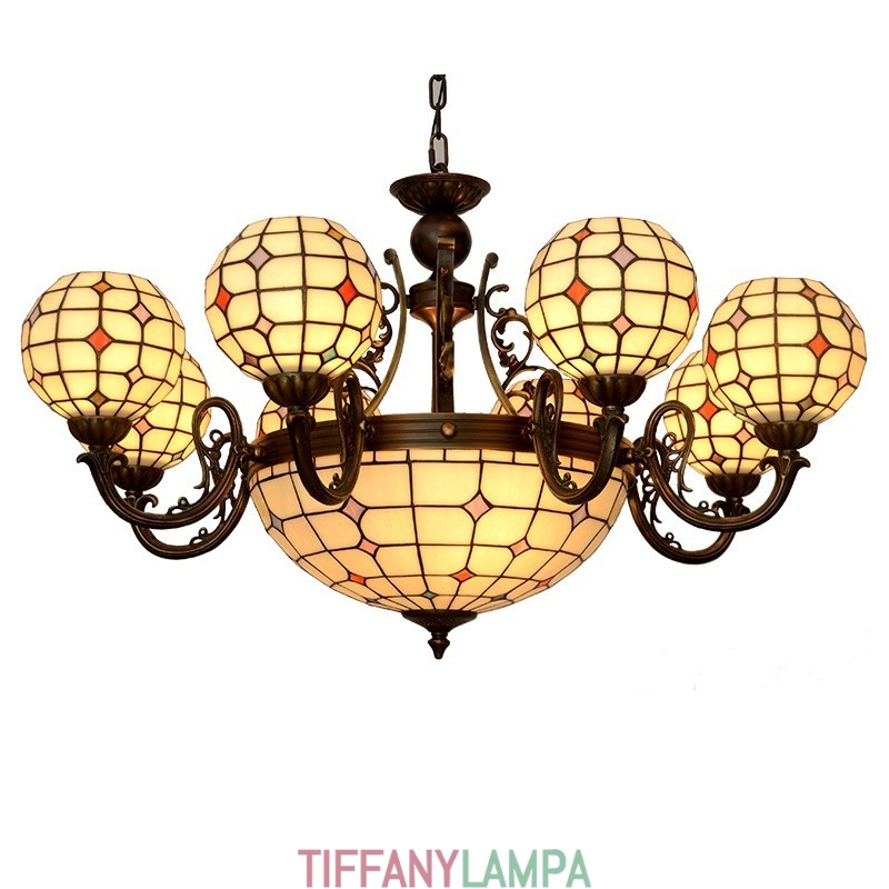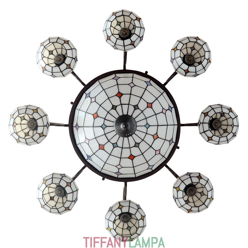 8+1 gaiša lustra Tiffany vitrāžu lustra