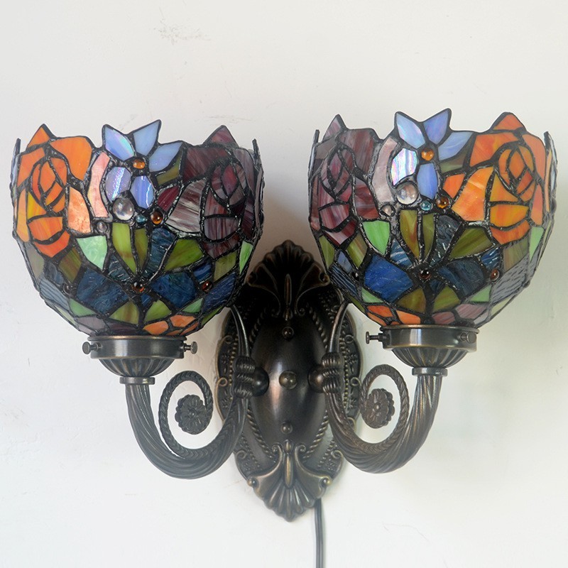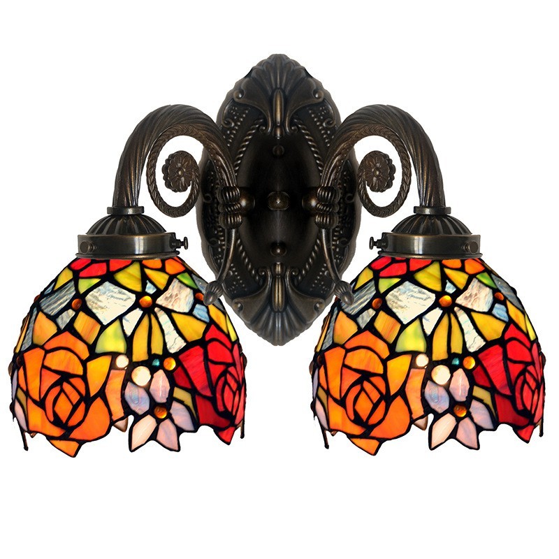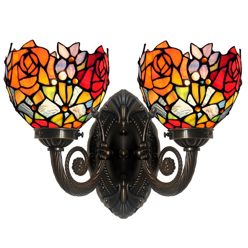 2 Light Rose Tiffany Vitrāžas Sienas gaismeklis