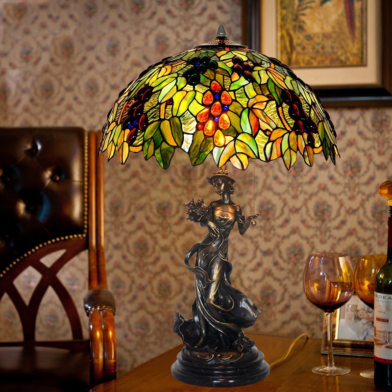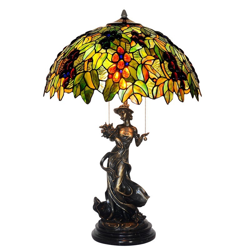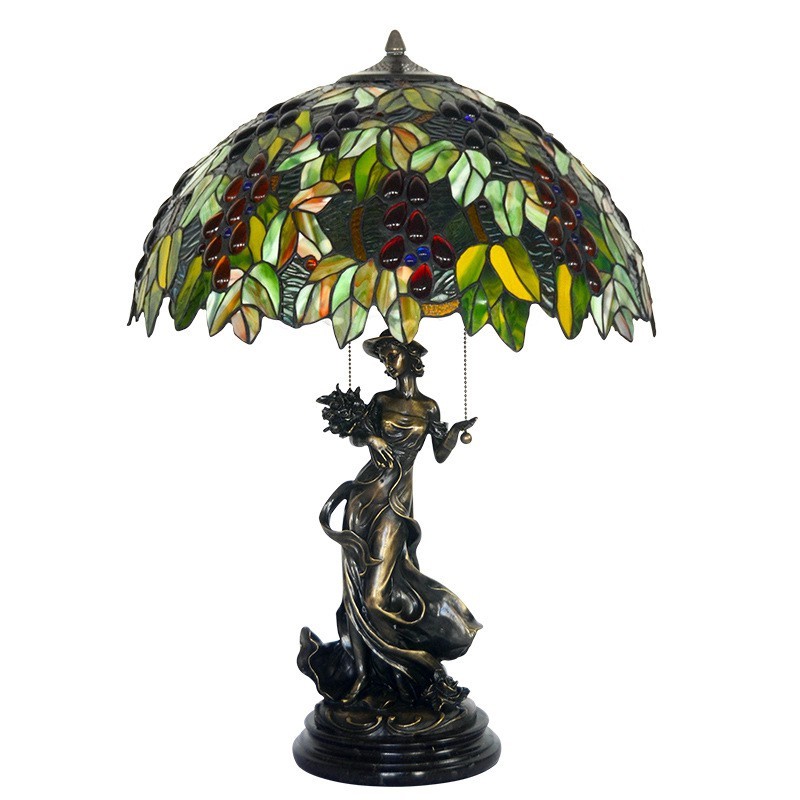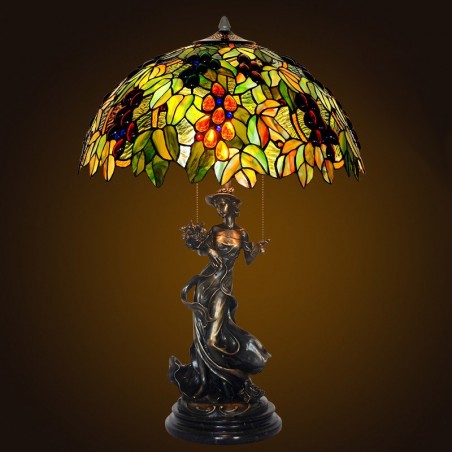 Lauku vīnogu Tiffany vitrāžas galda lampa