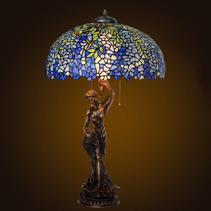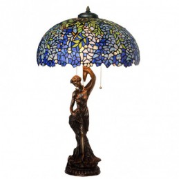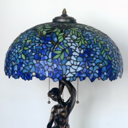 50 cm Retro zila Wisteria Tiffany vitrāžas galda lampa