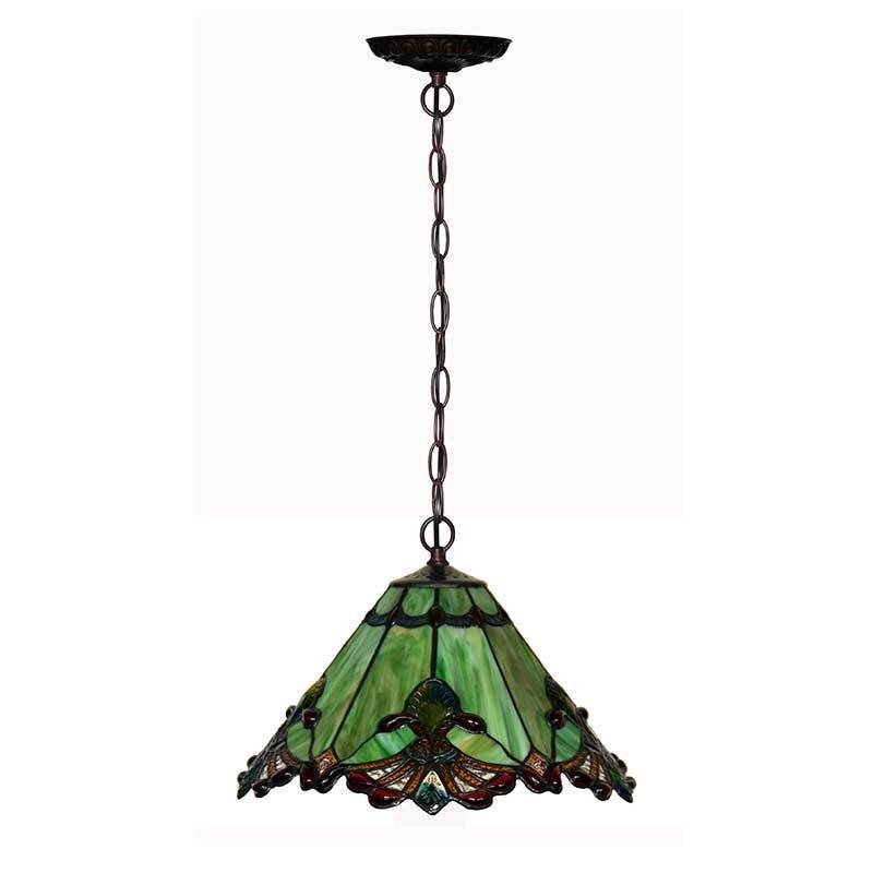 Diametrs:13 collas Atona materiāls:Vitrāža Stils:Eiropas retro Modelis:TK717 Ieteicamā telpa:Guļamistaba, Mācību telpa/birojs, Dzīvojamā istaba Spuldze Bāze:E26/E27 Amatniecība:Roku darbs Spriegums:90–240 V Spuldzes jauda:Maks. 40 W Spuldze ir iekļauta vai nav:spuldze nav iekļauta. Ieteicamais telpas lielums (kvadrātmetri):5 - 10