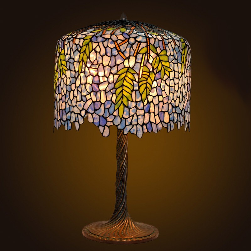 45 cm Wisteria Retro Tiffany vitrāžas galda lampa