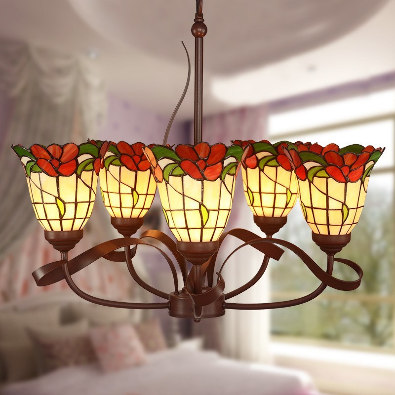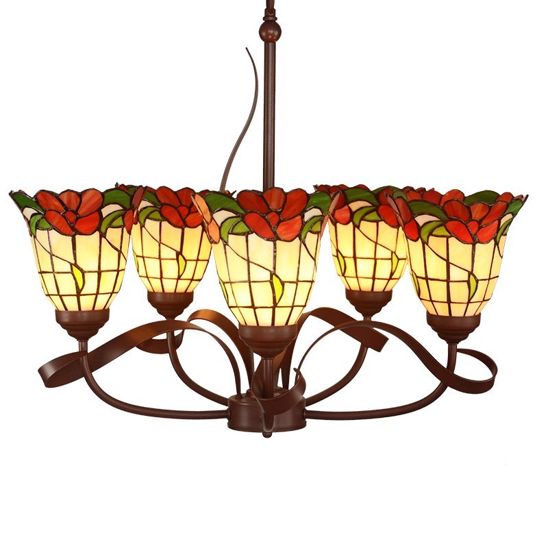5 Gaiša lustra Tiffany vitrāžu lustra