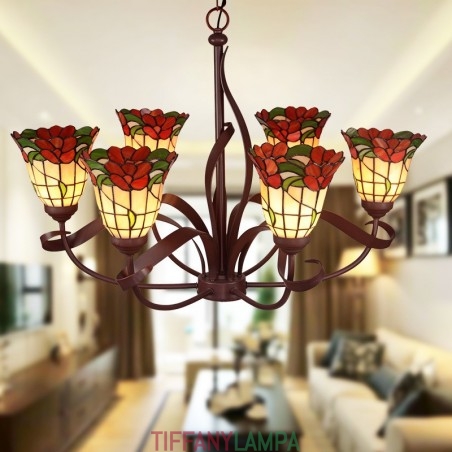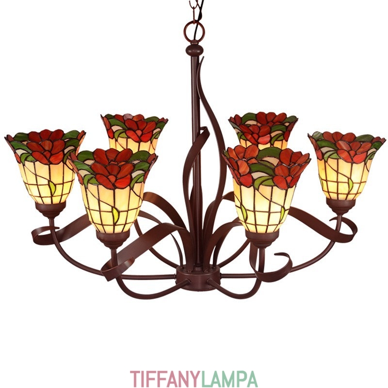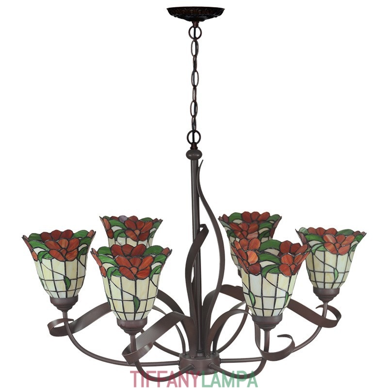Lauku 6 gaismas lustra Tiffany vitrāžas lustra
