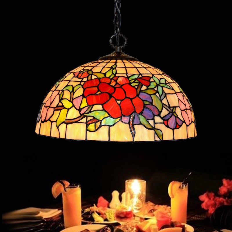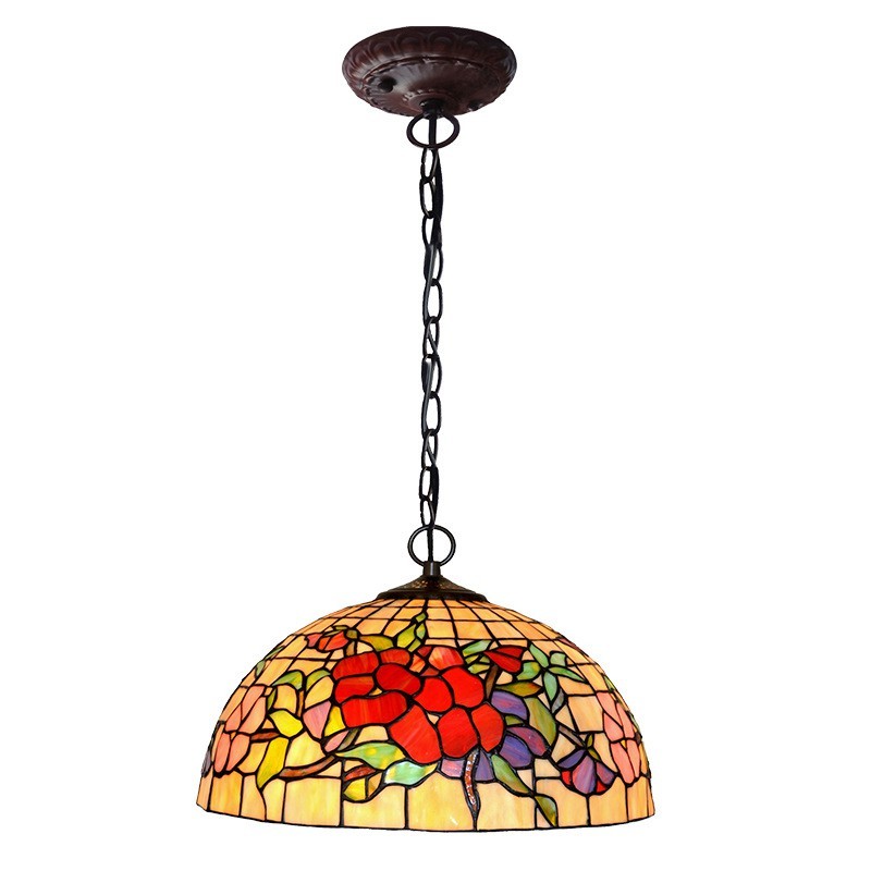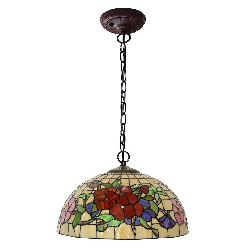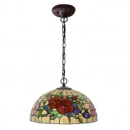 40 cm lauku stila Tiffany vitrāžu piekarināmais gaismeklis