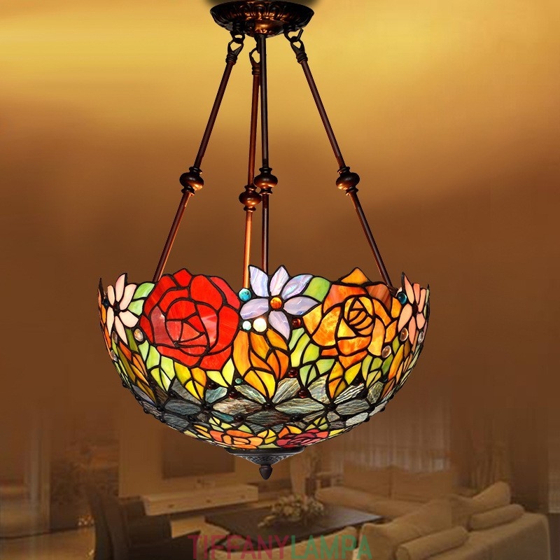 40 cm rozes Tiffany vitrāžu piekarināmais apgaismojums