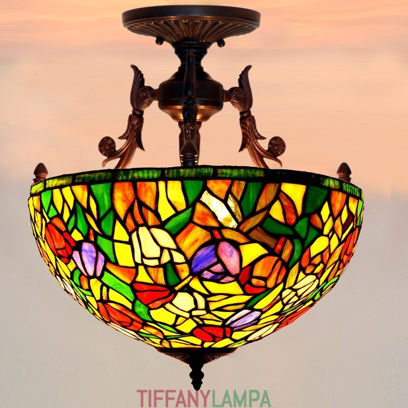 40 cm tulpju Tiffany vitrāžu piekarināmais apgaismojums