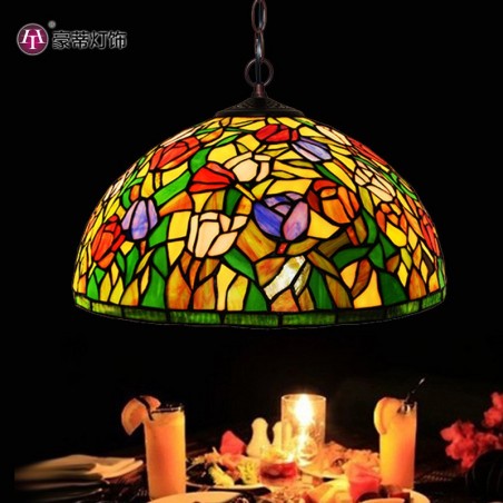 40 cm Tulip 1 Light Tiffany vitrāžas piekarināms gaismeklis