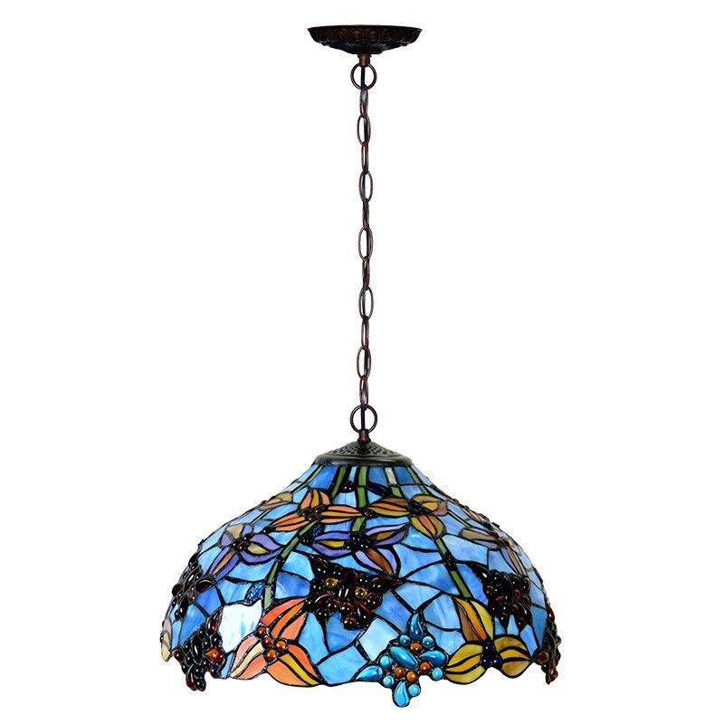 40 cm zemniecisks lauku tauriņš Tiffany vitrāžu piekarināmais gaismeklis