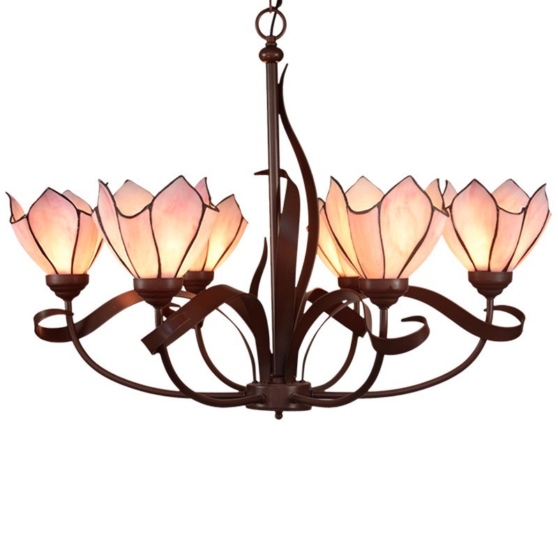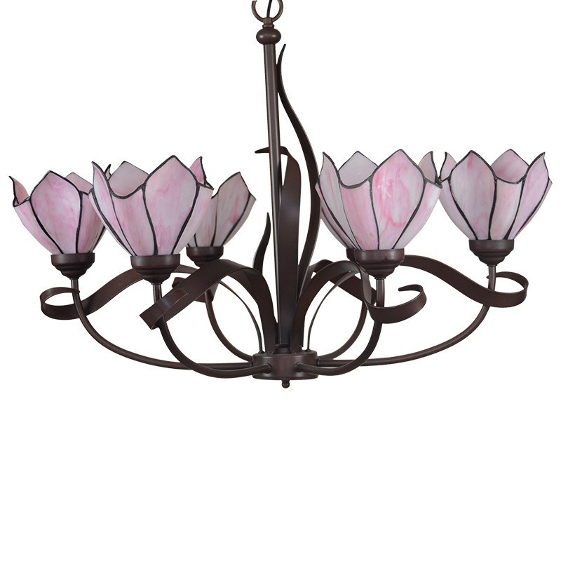 Lustra 6 gaiša Tiffany vitrāžu lustra