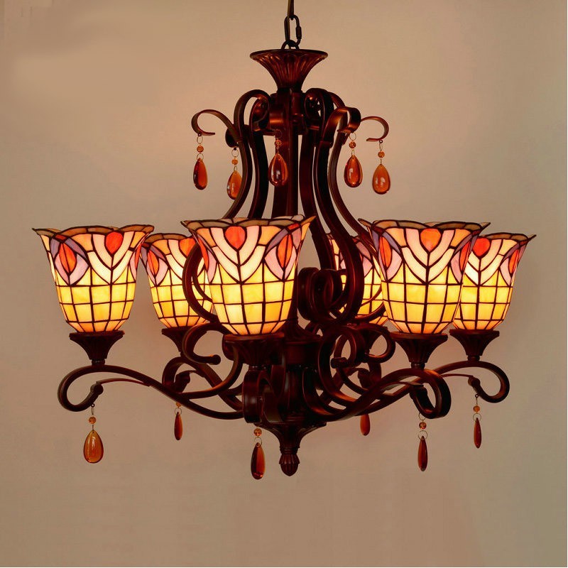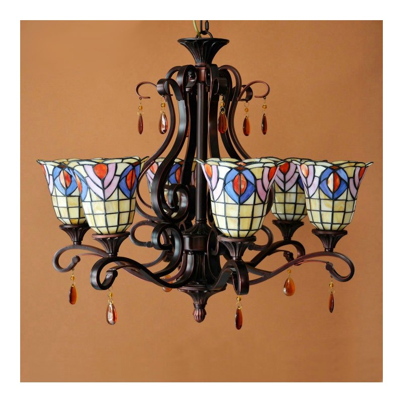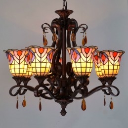 Retro lustra 6 gaiša Tiffany vitrāžu lustra