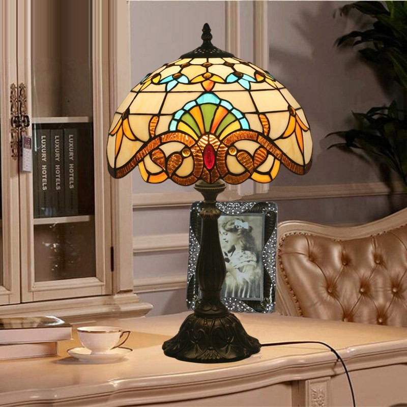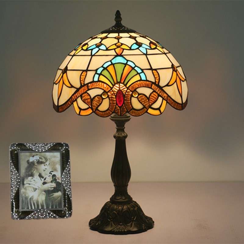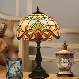 30 cm Eiropas vitrāžas baroka stila Tiffany galda lampa