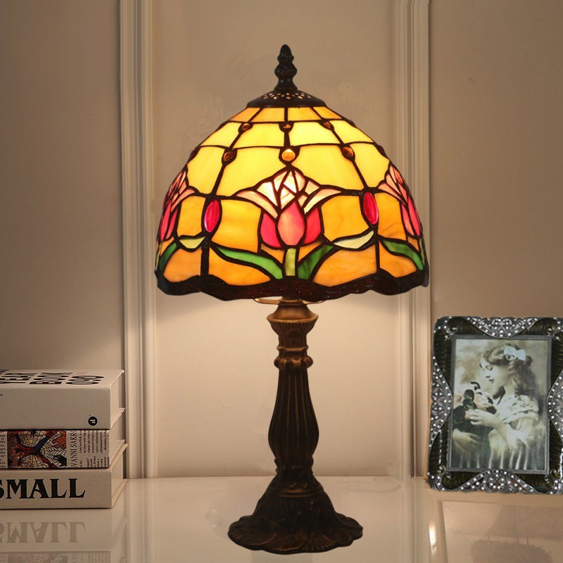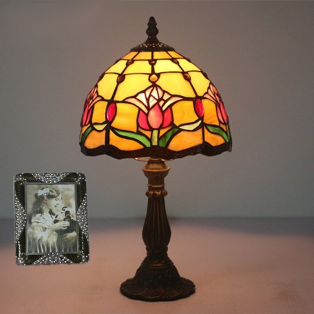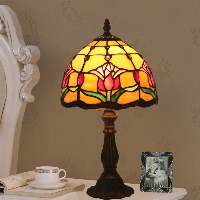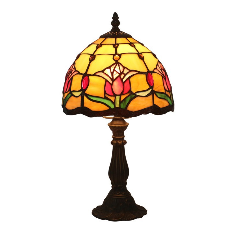 20 cm Eiropas vitrāžas tulpju stila Tiffany galda lampa