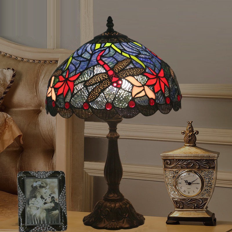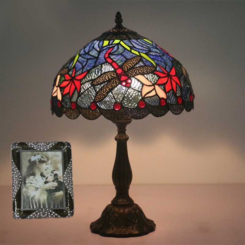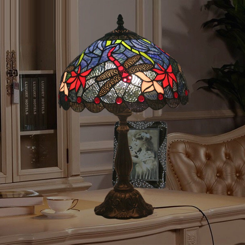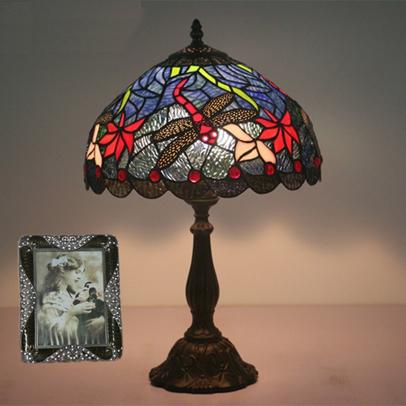 30 cm Eiropas vitrāžas spāres stila Tiffany galda lampa