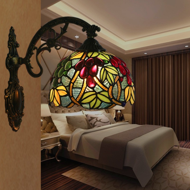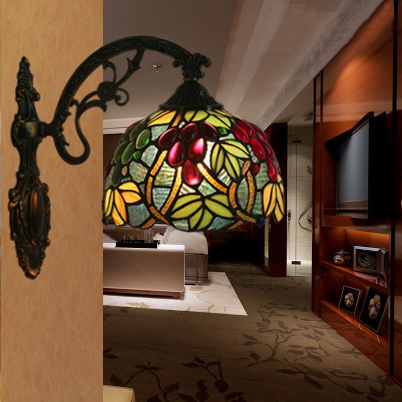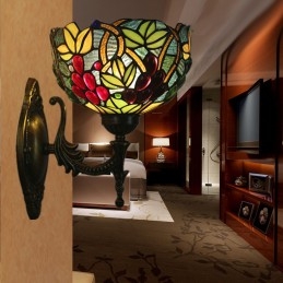 20 cm Eiropas vitrāžas vīnogu stila Tiffany sienas lampa