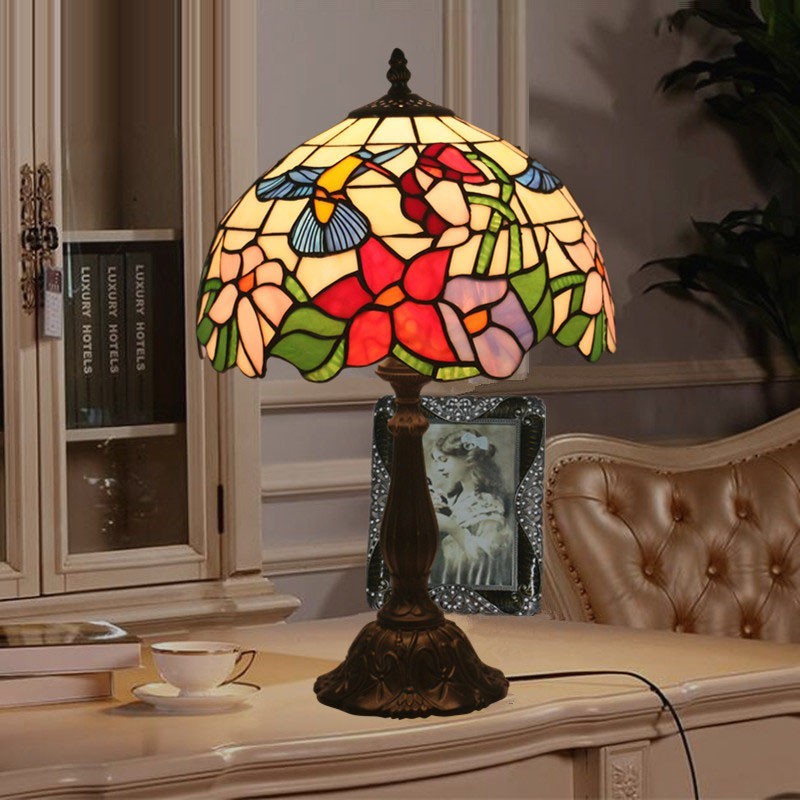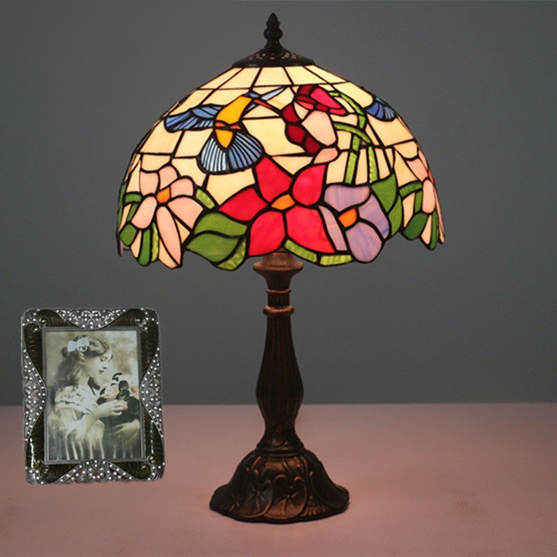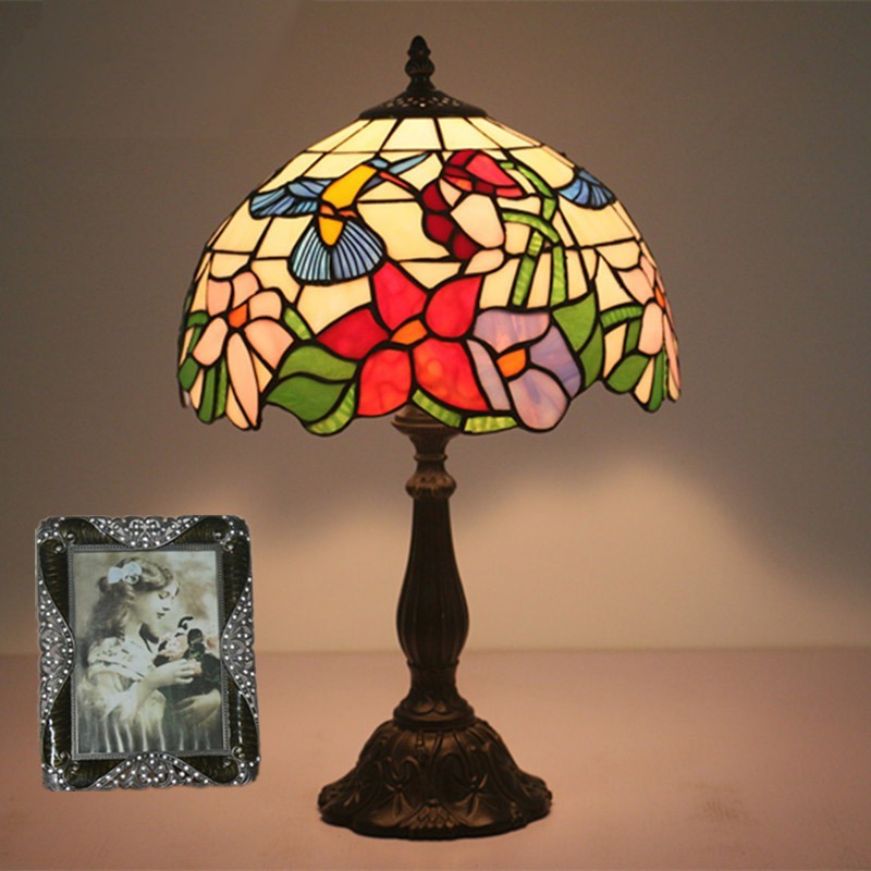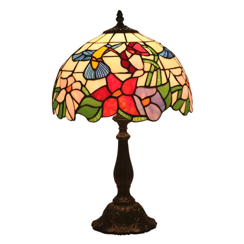 30 cm Eiropas vitrāžas kolibri stila Tiffany galda lampa